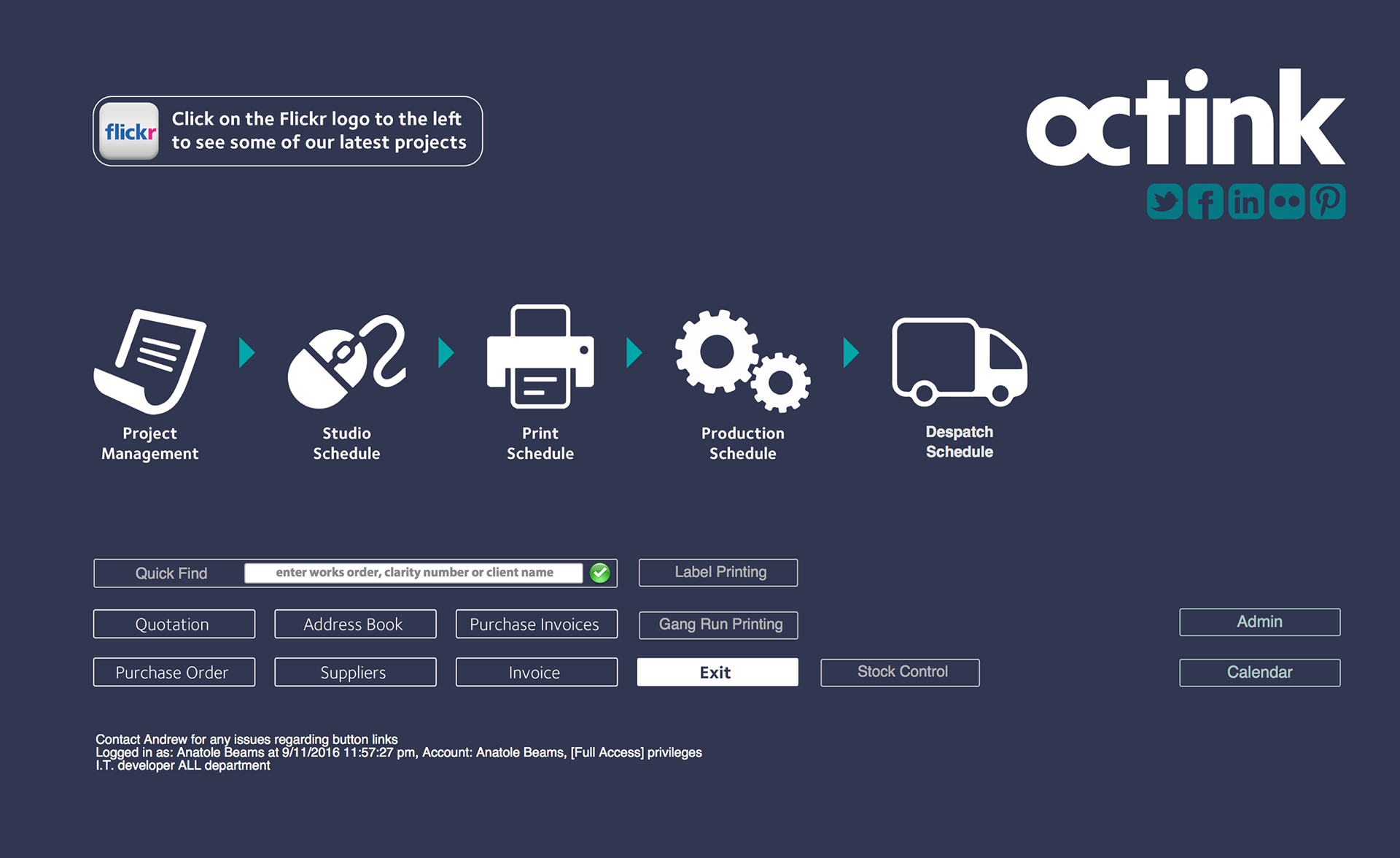 Signs and displays: project management, print, production, despatch and installations scheduling database.